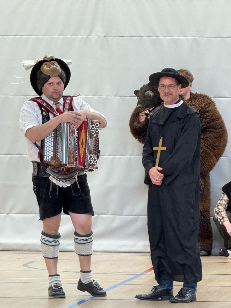 Die Kinder waren voller Aufregung als die Bären mit Bärentreibern, Spiegeltuxern, Hexen, Zottlern und Tschaggelern durch den Turnsaal tanzten.