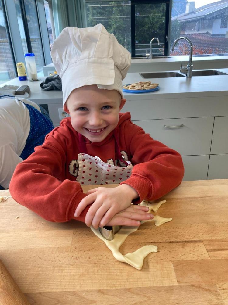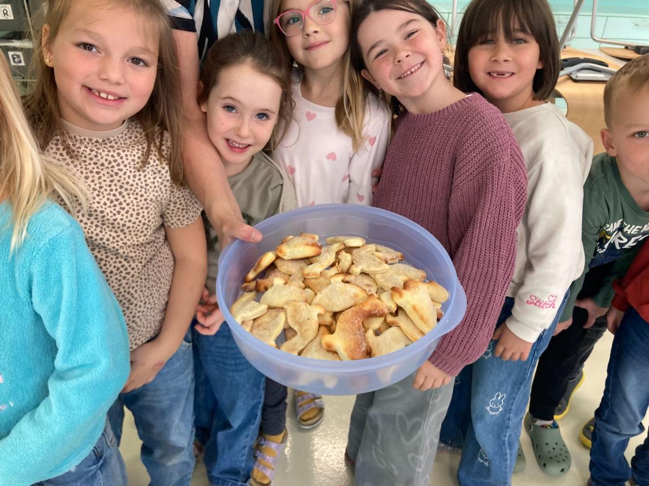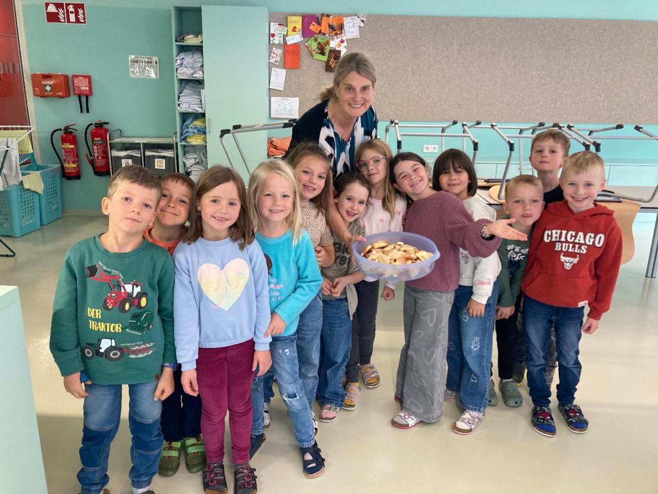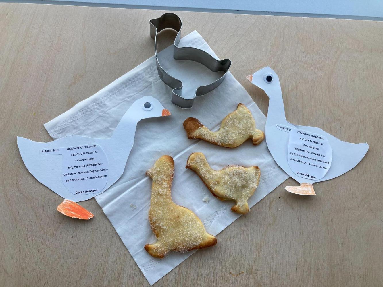 Am Martini-Tag 11.11.2025 wurde es in der Klasse 1b kreativ und lecker. In Werken gestalteten die Kinder eine Martini-Schablone und übten dabei Nachfahren, Ausschneiden und Anmalen. Danach ging’s in die Lehrküche: Wie im Sachunterricht und in der Mathematik wurde dort gemessen, gezählt und fleißig gebacken. Zum krönenden Abschluss durften die frisch gebackenen Köstlichkeiten in der Jausen Pause gemeinsam vernascht werden.