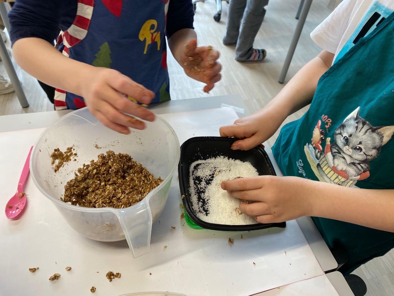 Süßes zum Muttertag von VS Neustift i.St. 18. Mai 2025 Unsere Aktion rund um den Muttertag: In unserer Popup - Küche im Klassenzimmer 2c kreierten wir gesunde und schmackhafte Energiekugeln aus Haferflocken und Nüssen!